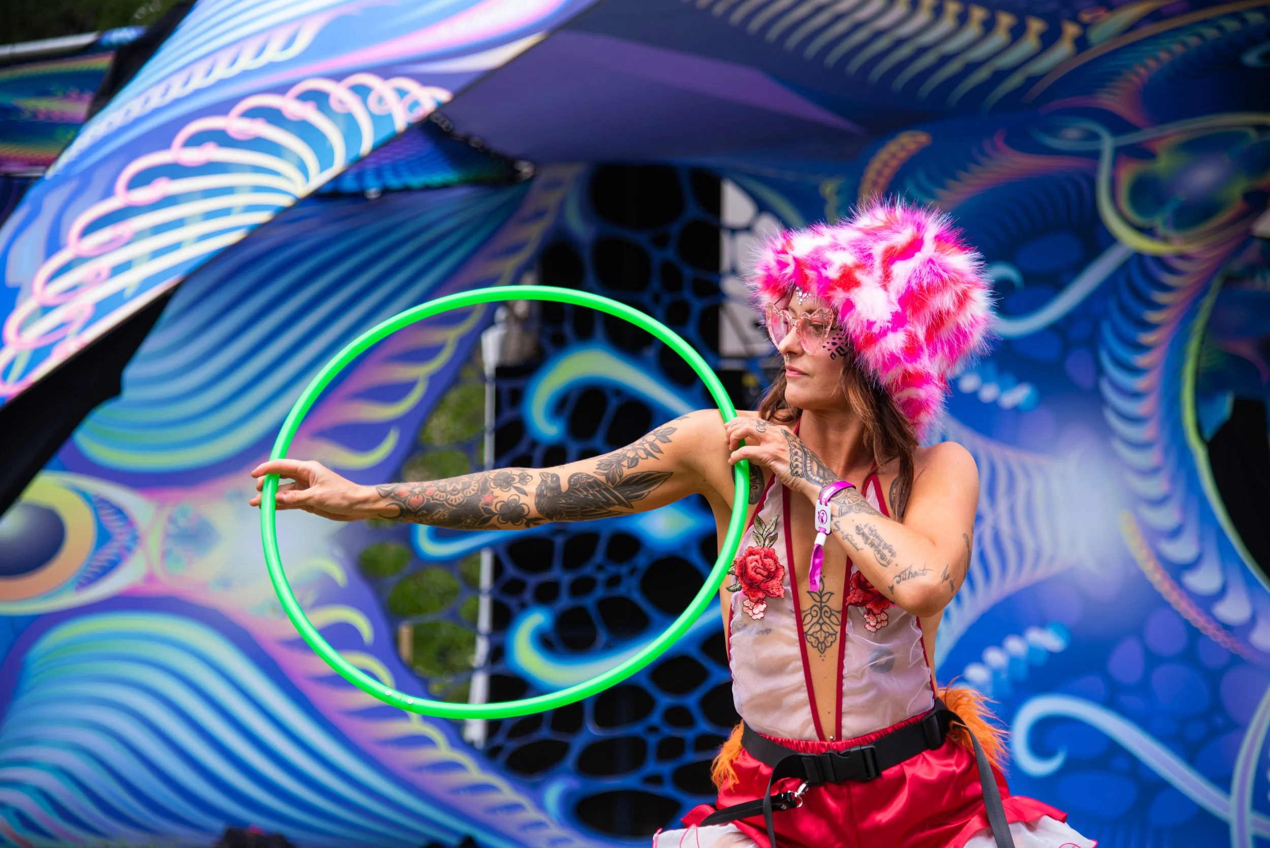 Whether I'm on stage or roaming through the crowd, my performances are all about joy, connection, and creating moments that make people smile (and maybe want to spin a hoop themselves!).